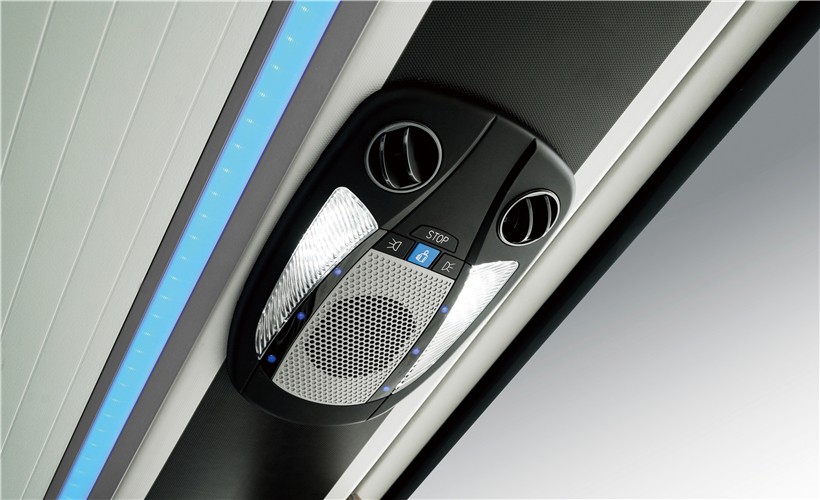 舒适氛围:道台阶引导灯、行李架照明加入了LED灯源设计,灯光更佳柔和舒适,内饰色彩搭配丰富。
